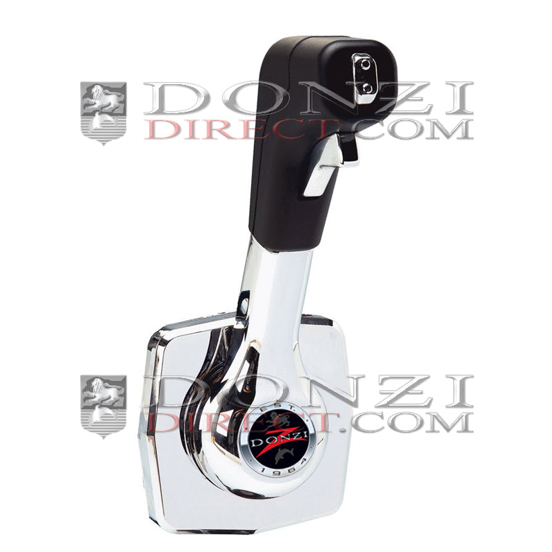 This sporty single-lever side mount control is a significant upgrade for Donzi Classic models or any single-engine Donzi with side mount control. Compared to the standard Mercury or OMC controls used by the factory, this upgraded unit boasts a more solid and substantial, performance-oriented feel and looks better too, with custom grip and chrome accents. The single lever controls both shift & throttle, with a power trim switch located in the handle grip. Neutral safety switch prevents accidental gear engagement.