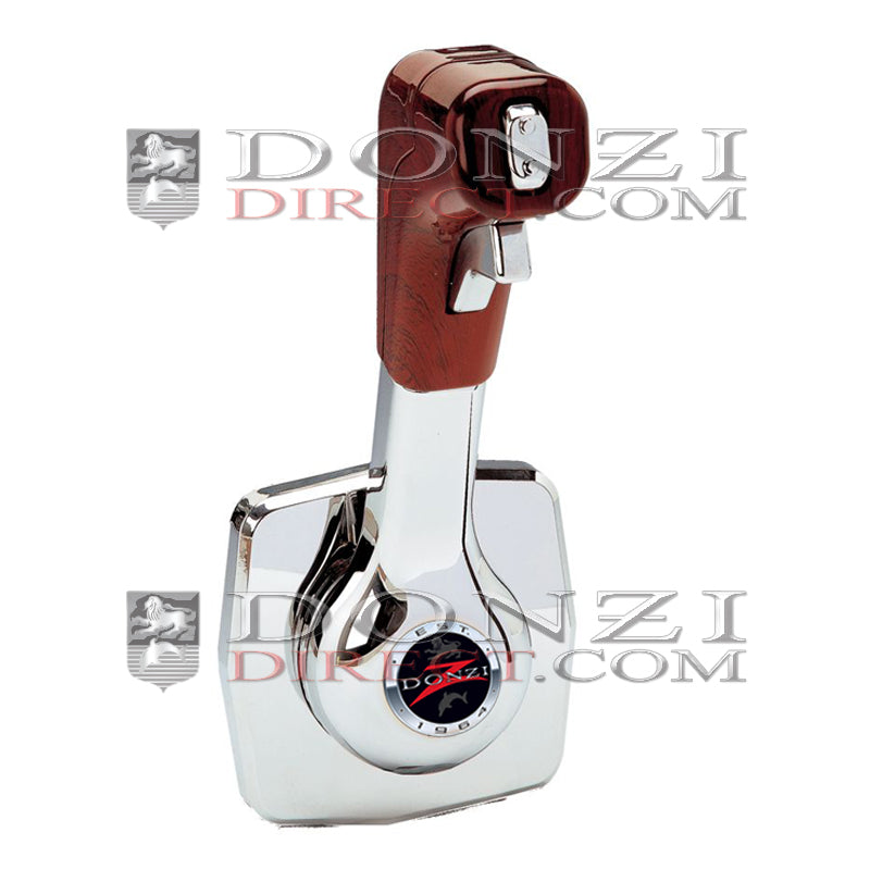 This sporty single-lever side mount control is a significant upgrade for Donzi Classic models or any single-engine Donzi with side mount control. Compared to the standard Mercury or OMC controls used by the factory, this upgraded unit boasts a more solid and substantial performance-oriented feel and looks better too, with custom grip and chrome accents. The single lever controls both shift & throttle, with a power trim switch located in the handle grip. Neutral safety switch prevents accidental gear engagement.